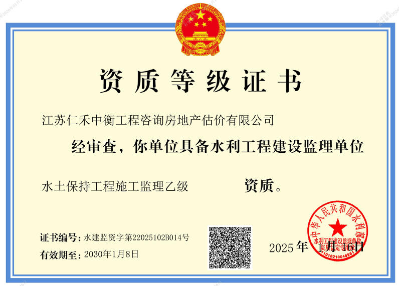 - 水土保持工程施工監(jiān)理乙級證書